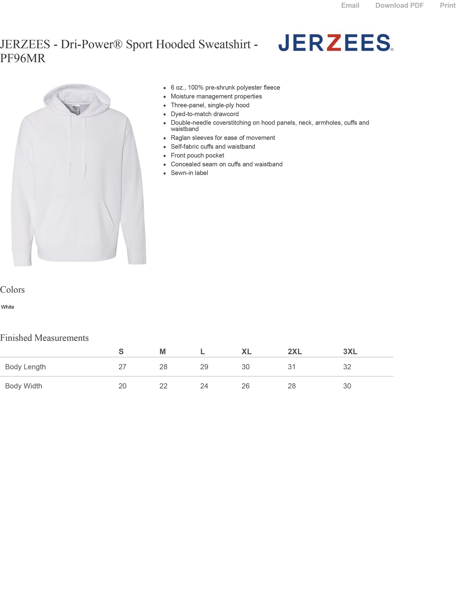 Size Chart Youth T-Shirt Size Chart (100% Polyester) Sizes/Width/Length/Sleeve center back 6M /25.5"/29”/... 12M /28"/31"/… 18M /30”/33.5”/… 2T/13"/15.5"/... XS(2-4)/14"/18"/11.5" S(6-8)/16"/20.5"/13.5" M(10-12)/17"/22"/14.5" L(14-16)/18"/23.5"/15.5" Adult T-Shirt Size Chart (100% Polyester) Sizes/Width/Length/Sleeve center back S/18"/28"/15.63" M/20"/29"/17" L/22"/30"/18.5" XL/24"/31"/20" 2XL/26"/32"/21.5" 3XL/28"/33"/22.88" 4XL/30”/34”/24.25” 5XL (Cotton Only)/32”/35”/…Not Air-Volution Compatible Youth Hoodie Size Chart (100% Polyester) Size/Chest (on 1/2") YXS(2-4)(Cotton Only)/14” Not Air-Volution Compatible YS(6-8)/18.5" YM(10-12)/20" YL(14-16)/21.5" Adult Hoodie Size Chart (100% Polyester) Size/Body Length/Body Width S/27"/20" M/28"/22" L/29"/24" XL/30"/26" 2XL/31"/28" 3XL/32"/30"