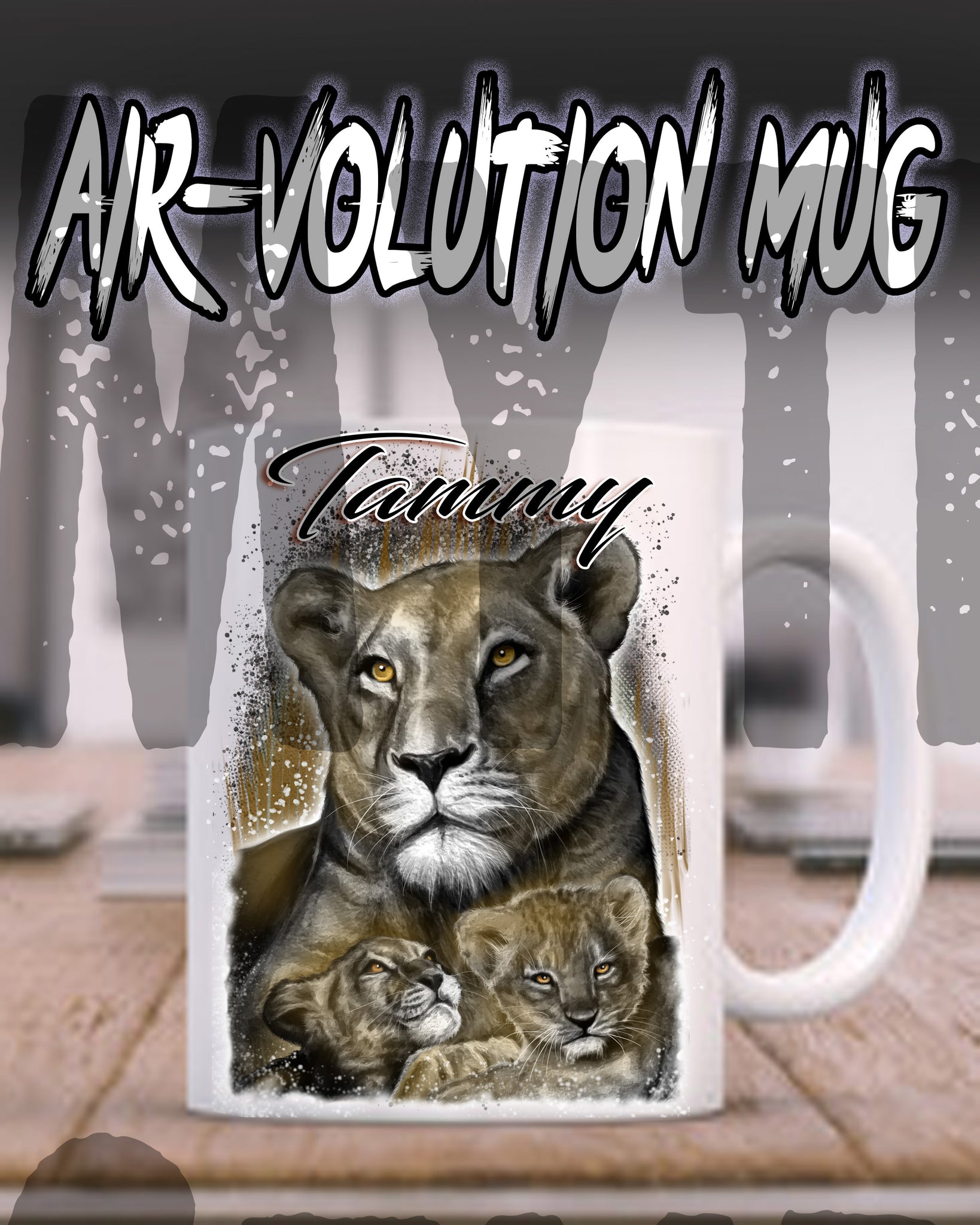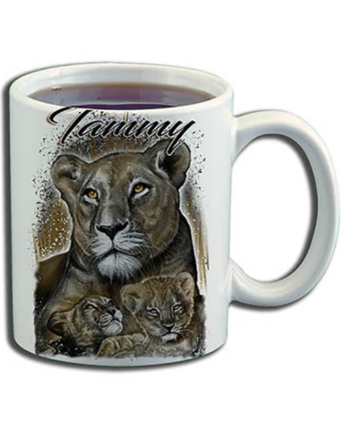 I014 Personalized Airbrush Tiger and Cubs Ceramic Coffee Mug
